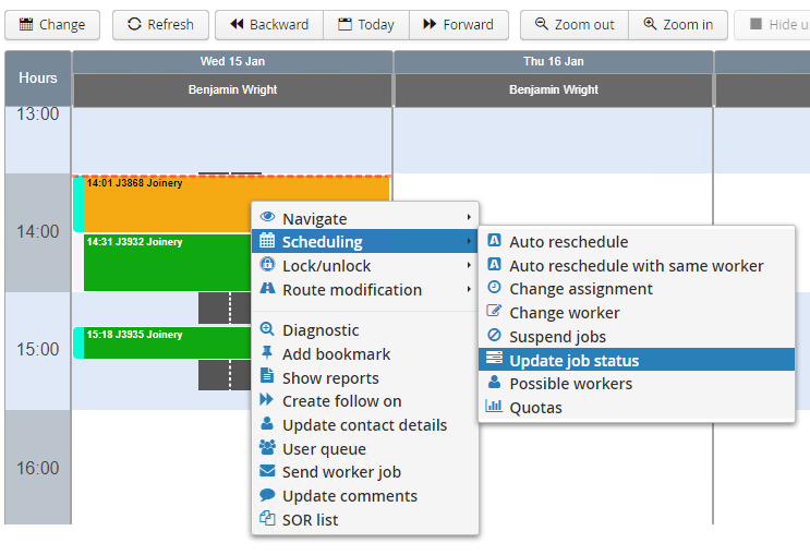Right click on the job in the diary then select Scheduling > Update Job Status
